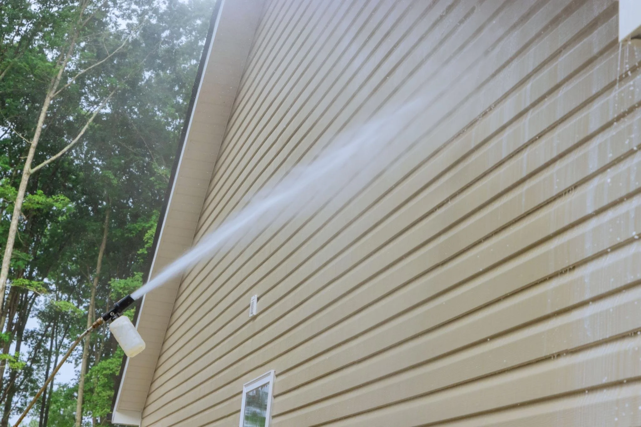 Yes—but only when done correctly. We use a soft washing method for siding, which uses low pressure and cleaning solutions to safely remove algae and dirt without damaging your home.
